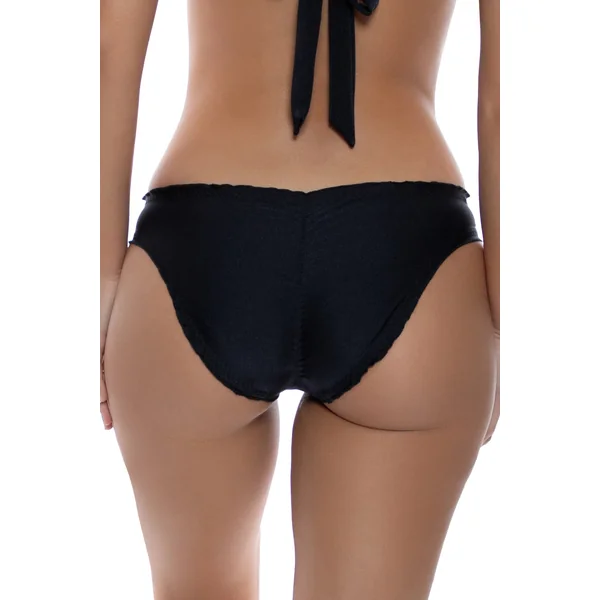 Hipster bottom with lettuce edging and ruched back, provides moderate coverage.