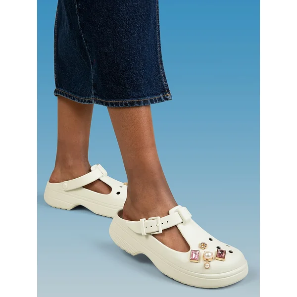 Mary Janes are the “it” shoe to have, and you can now enjoy the benefits you love of the Classic Clog in a Mary Jane style. Building on the shape and fit of the Classic Platform, the Classic Mary Jane features the fashionable Mary Jane styling with an adjustable front strap and a slight platform heel, making it versatile and easy to wear. The upper still holds Jibbitz™ charms, so you can personalize and express your unique style. Feminine, trend-right styling combines with Iconic Crocs Comfort to make the Classic Mary Jane a fashionable new favorite.