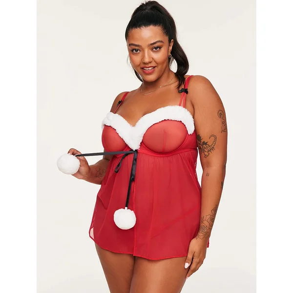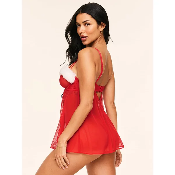 This flirty babydoll trimmed with faux fur brings a fun update to a classic look. Add the matching panty to complete the look of this set.