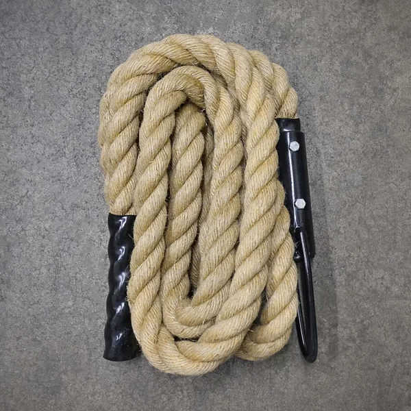 Sisal Climbing Ropes are for use indoors in dry settings only. Using these climbing ropes outdoors voids the warranty and could lead to injury. To properly install, wrap the rope around any sturdy apparatus and pass the end of the rope through the hook eyelet.