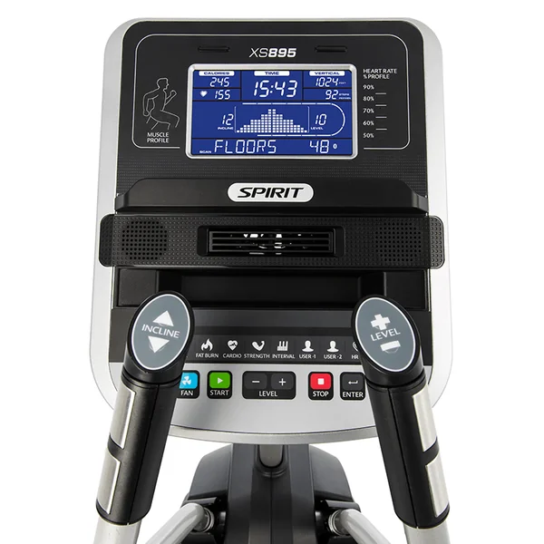 The Spirit Fitness XS895 HIIT Trainer takes your HIIT workouts (High-Intensity Interval Training) to a new level. It provides you with an arched incline adjustment that changes not only the stepping incline but also the height. Fine tune your stepping motion with 20 incline adjustments from a 10″ step height at 43° to a 14″ step height at 60°.