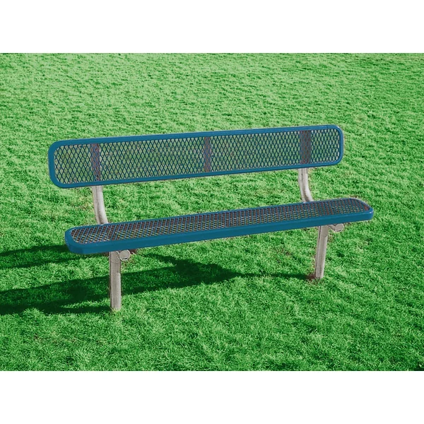 These steel benches with backs are constructed of heavy-gauge metal with a heavy-duty 2-3/8″ OD galvanized-steel tube frame for superb stability. A thermoplastic coating creates a smooth, high-gloss surface that stays cool to the touch, even under the sun. This coating resists fading, mold, and mildew. It also will not crack, rust, or peel. Great for playgrounds, parks, and fields, these benches provide maintenance-free care through years of use. Permanent benches include two support legs that mount into the ground. Benches are 22″W x 32″H. Seats are 10″W x 18″H. Assembly required.