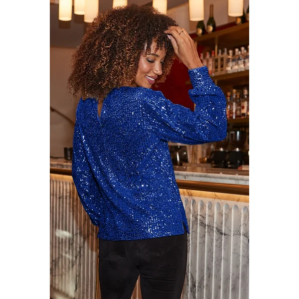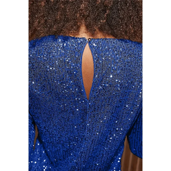 Be the first to review “Cobalt Blue Sequin V Neck Blouson Sleeve Top”