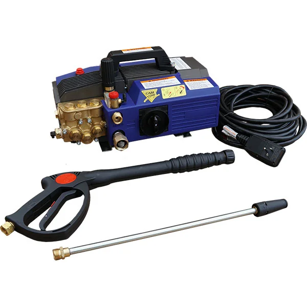 Commercial Hand Pressure Washer is an electric cold water pressure washer that delivers up to 2 gpm at 1450 psi. Features an industrial motor that is totally enclosed and thermal overload protected, industrial triplex plunger pump with ceramic plungers and stainless steel valves protected by unloader valve.