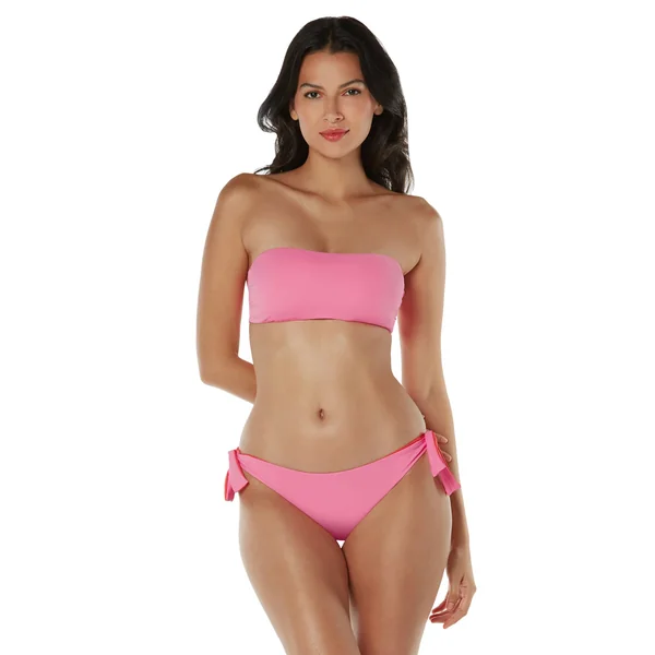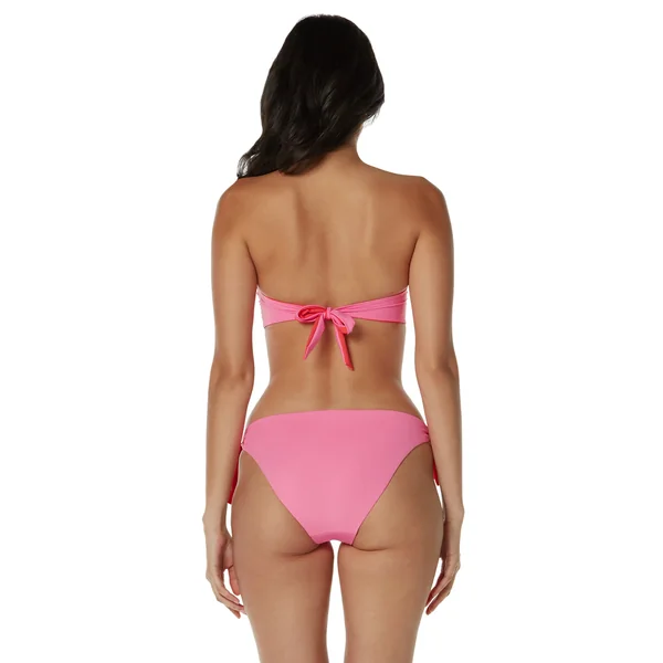 Bandeau bikini top offers removable halter strap and tie back closure.