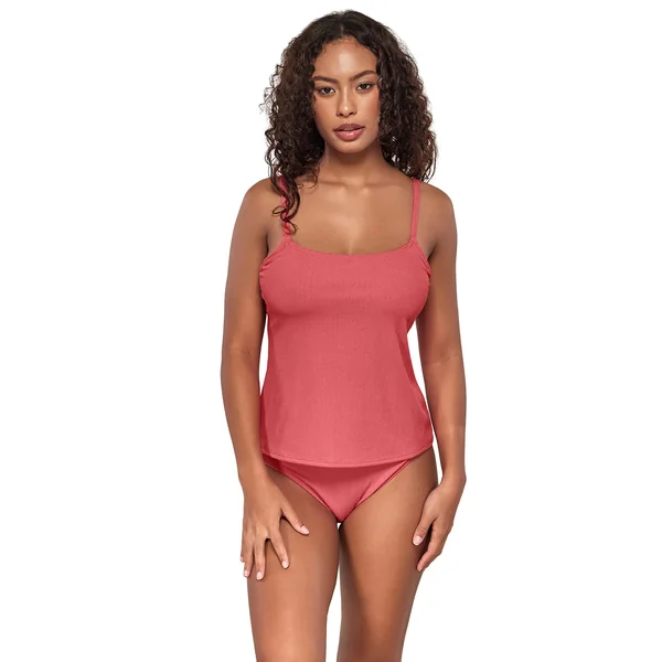 Combining comfort, style, and perfect coverage, the Coralie tankini offers it all. Thanks to Pacifica scrunch fabric, this tankini molds to your body like soft sand. It also features a hidden underwire, shelf bra, removable cups, and a j-hook that converts the straps to a cross-back.