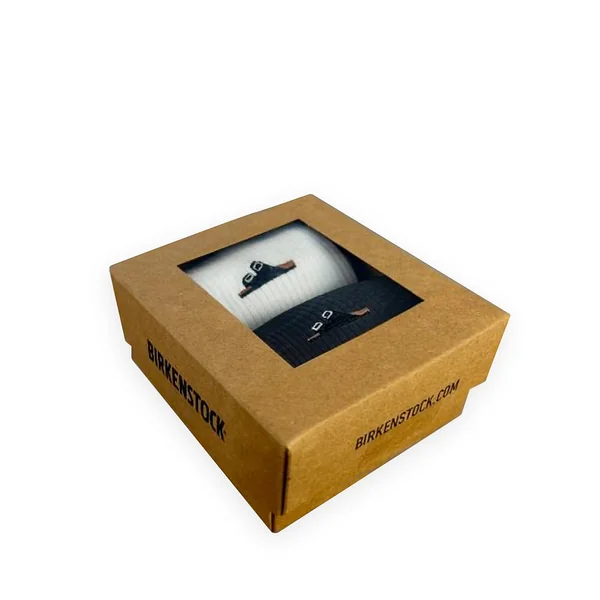 This set consists of two pairs of BIRKENSTOCK Cotton Ribbed socks. The ribbed structure prevents them from slipping down and makes them fit perfectly. The iconic Arizona sandal is embroidered on the outside. The pressure-free, elasticated cuff guarantees maximum comfort.
