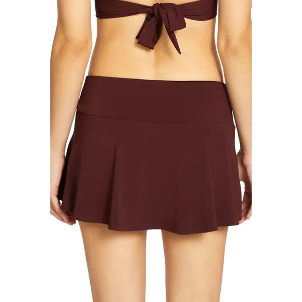 Fluttery cover skirt features raffia O-ring side detail.