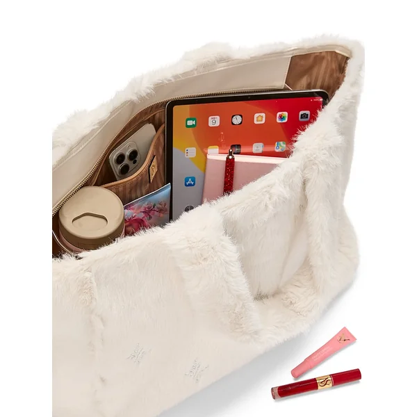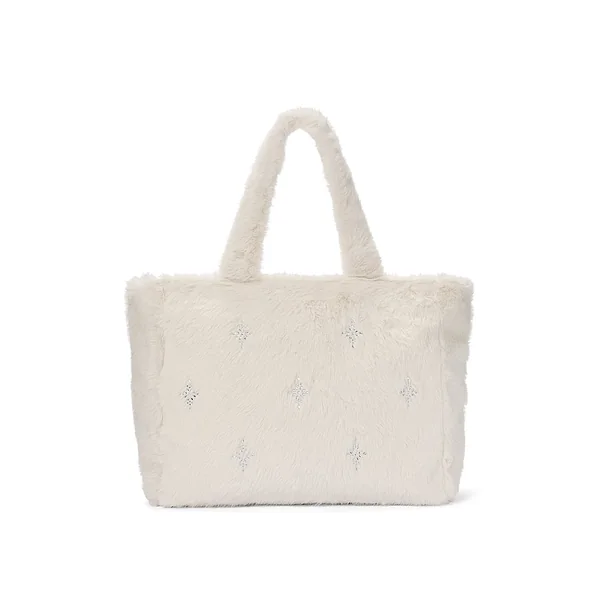 Channel a glamorous winter with this Cozy Tote. Plush faux fur adorned with sparkling diamanté crystals keeps you feeling fabulous, even on the chilliest days of the season.