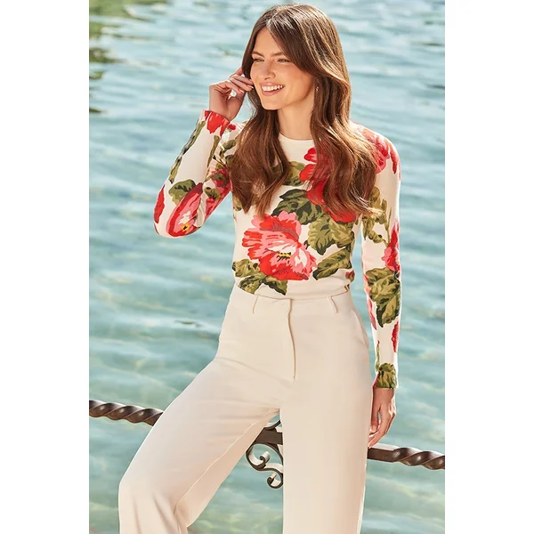 Be the first to review “Cream & Pink Floral Print Jumper With Gold Buttons”