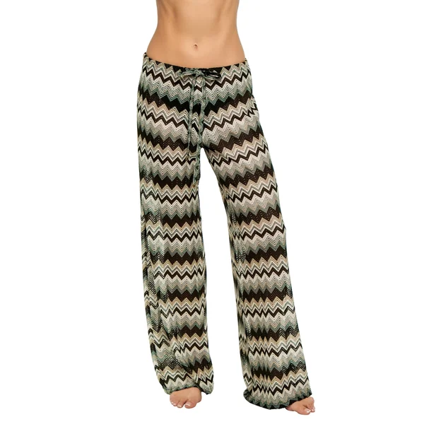 Chevron knitted pants a tie waist and wide leg.