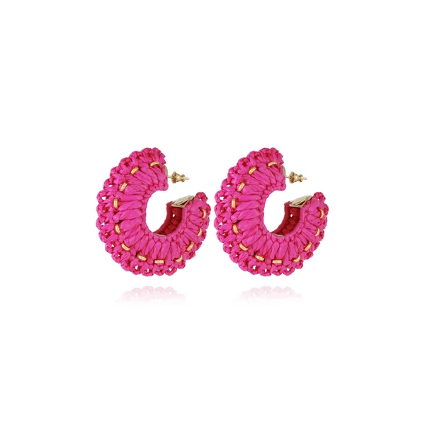 Crocus hoop earrings features woven raffia with gold details and post back closures.