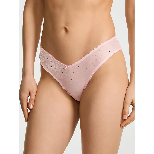 Glisten up: Your top drawer is calling for this semi-sheer, shimmery Brazilian Panty dotted all over with glittering crystals. A sexy V-cut front defines the silhouette.