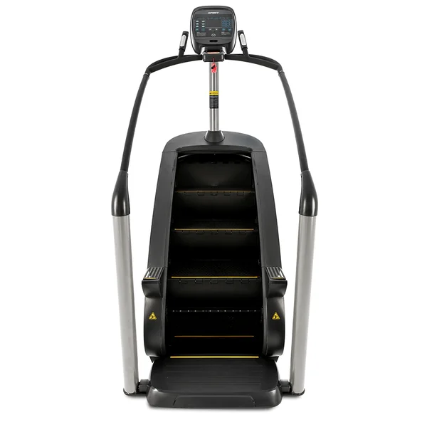 The Spirit Fitness CSC900 StairClimber is a great way to get a challenging yet rewarding workout. A sturdy industrial drive system ensures years of reliable, trouble-free service. The transmission, from steps to brake, is chain connected to steps driving a 20:1 gear box connected to an automobile Prestolite alternator. The 21.5″ step width and 11″ step depth provide one of the largest step surface area of any commercial stair stepping machine, which increases safety while also easily accommodating training positions such as side crossover steps. The CSC900 has 10 pre-programmed workouts, 20 levels of resistance, and can reach up to 168 steps per minute to help you keep your fitness routines challenging. The multi-position handlebars include built-in heart rate sensors and resistance controls to help you stay in the zone.