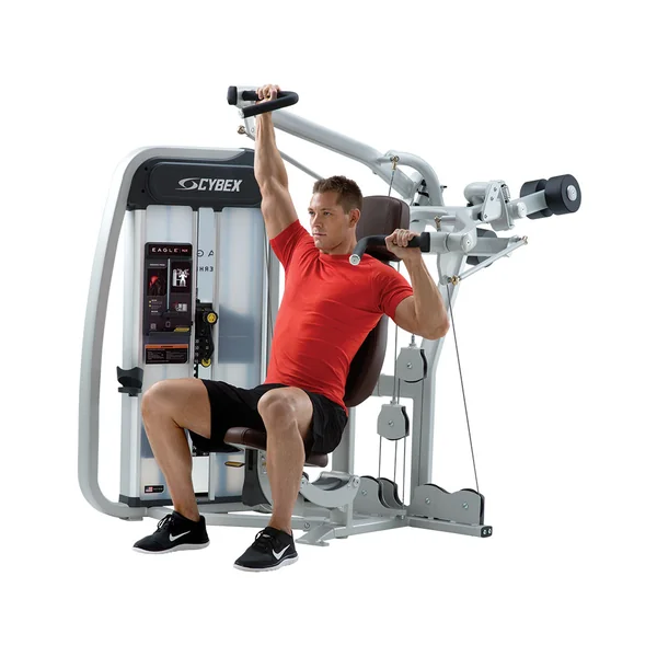 Select a pattern of motion, or let the machine do it for you. Dual Axis Technology® is a Cybex patented strength training mechanism that provides variety and versatility for the most complete workout. Standard selectorized equipment trains muscles from a single direction that is defined only by the machine. Using our unique Dual Axis Technology® the Cybex Eagle NX Overhead Press offers the option to train in either the machine-defined pattern of motion, or to move in a different pattern – one defined completely by the user.