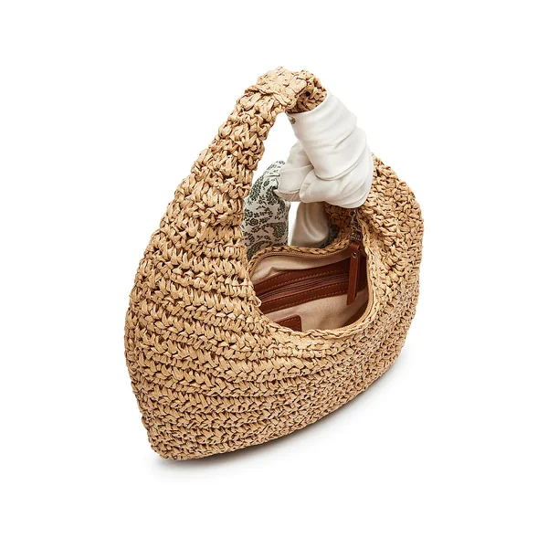 This DAENRYS shoulder bag features a small straw crescent design, combining functionality and style. With its lightweight and durable material, it allows for easy portability while providing a fashionable accessory for any outfit.