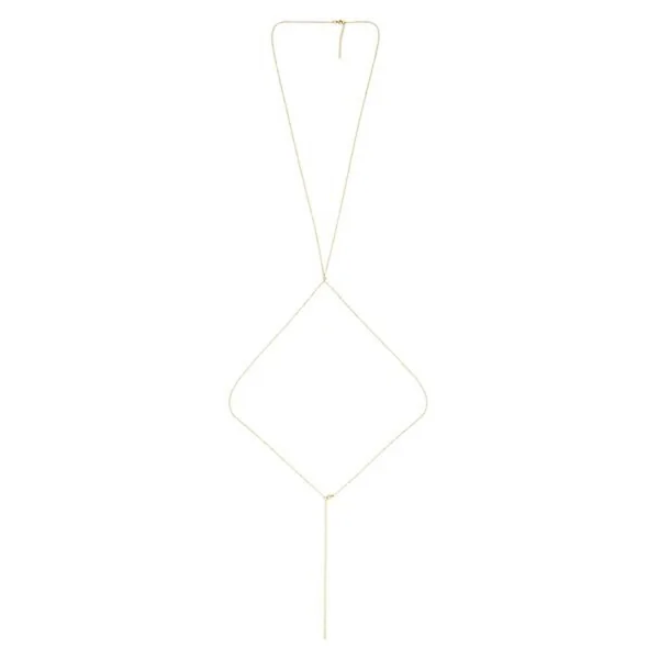 Daphne body chain features water resistant stainless steel with a cubic zirconia gemstone and offers a lobster clasp closure.
