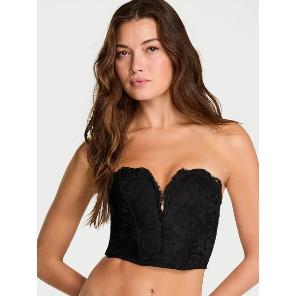 A plunging V neckline and cropped silhouette define this sexy, strapless Bustier. Crafted in our dreamy, ultra-soft and stretchy lace, it adds the perfect femme touch to denim, leather, and more.