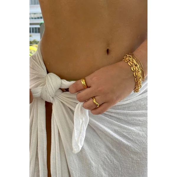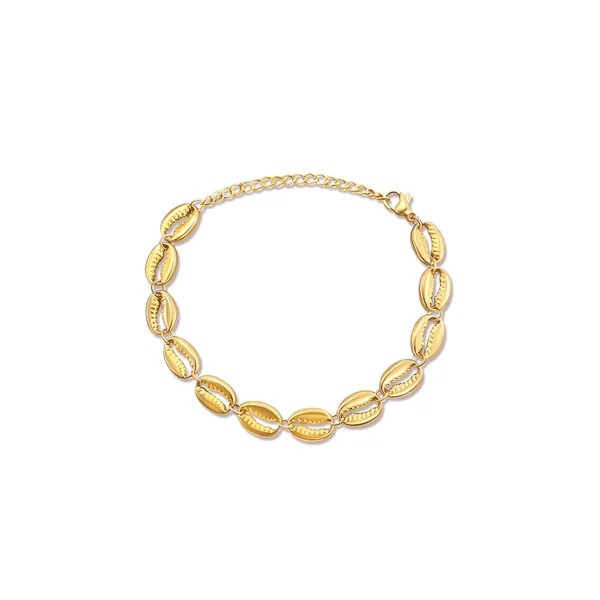 Demna shell bracelet features hypoallergenic gold-plated stainless steel that is water resistant and offers a lobster clasp closure.