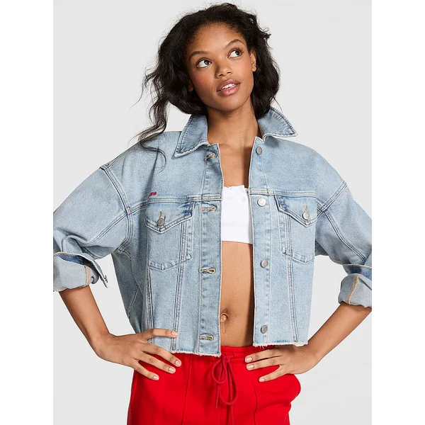 All the Trucker Jacket deets you love, with a cute, cropped silhouette for a sleek and chic finish. Oh, and a frayed hem! Pairs well with: pretty much everything (but especially the Denim by PINK Mid-Rise Baggy Wide-Leg Jeans).