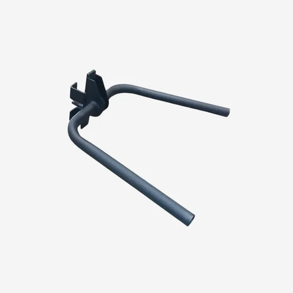 The Wright Pro Press Squat Attachment is constructed from 1.5″ tube and attaches to the Rig by using a CNC cut and bent bracket and a 1/2″ Hitch Pin. The angled dip arms allows for different size athletes to easily get into the proper position for a good effect dip.