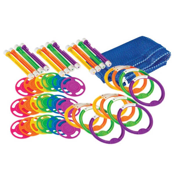 Get swimmers comfortable with going underwater by sending them on a hunt for these 42 diving tools! Each set includes discs, rings, sticks, and a mesh storage bag to hold them all.