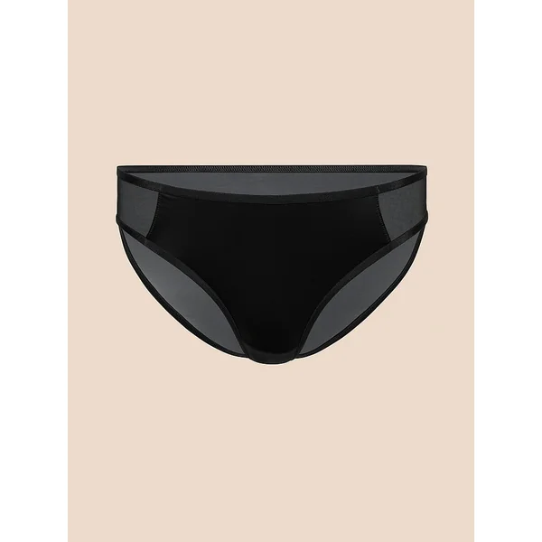 Playful, comfortable, and perfect for date night. This bikini panty has a shiny microfiber front panel and a completely sheer mesh back.