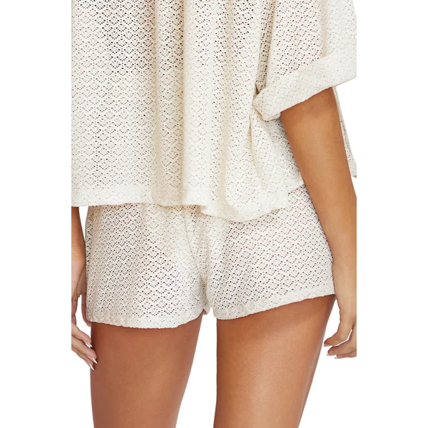 Drew shorts feature lace textured fabric with metallic details, side seam pockets and a flowy loose fit.