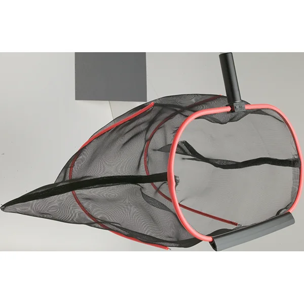 The DuraPro Maxi swimming pool leaf rake pocket has “stays” on it that keep the netting open moving forward and closed coming back, allowing debris to enter and empty effortlessly. A leafing edge rotates to help leaves and debris glide into the pocket. Dimensions: 20″ w x 10″ l x 16″ d”; Weight: 1 lb.