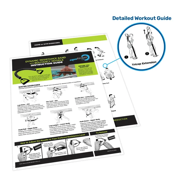 The Dynamic Fitness Resistance Band allows you to personalize your workout to be flexible around your schedule and your fitness needs. This water aerobics pool noodle is designed to improve sports performance, elevate fitness, and increase strength. It is perfect for adding tension to common exercises and is an easy way to get fit! Includes workout manual with over 20+ exercises for the pool, gym, anywhere, etc.