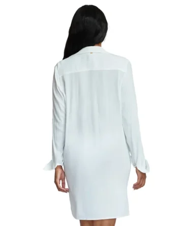 Playa Vee floaty linen shirt dress is a chic and easy essential featuring drop sleeves and natural shell buttons. Perfect for any destination, on or off the beach.