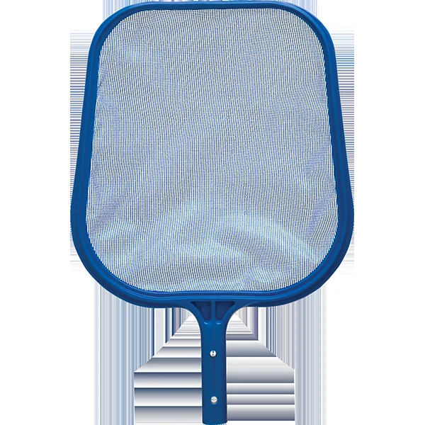 Economy swimming pool leaf skimmer has a molded plastic frame and handle with a polypropylene mesh net. Dimensions: 12″ x 12 1/2″; Weight: 10 oz.