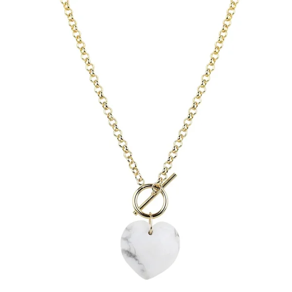 The Ela Gem necklace adds a touch of femininity to your layered look with a beautiful heart shaped gemstone pendant. Toggle clasp closure.