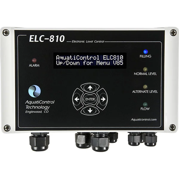The ELC-810 dual sensing water level controller has dual sensing-overflow protection derived from adding a high level sensor with a normally open valve that will close when the pool water reaches the high level sensor. This dual sensing water level control from the ELC-810 prevents the possibility of flooding and protects against human error. The ELC-810 dual sensing water level controller for surge tank applications allows mounting of the controller in the swimming pool surge tank and is used in overlow gutter applications. Comes standard with 25′ of cable.