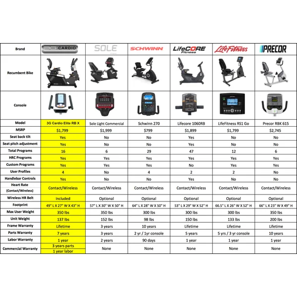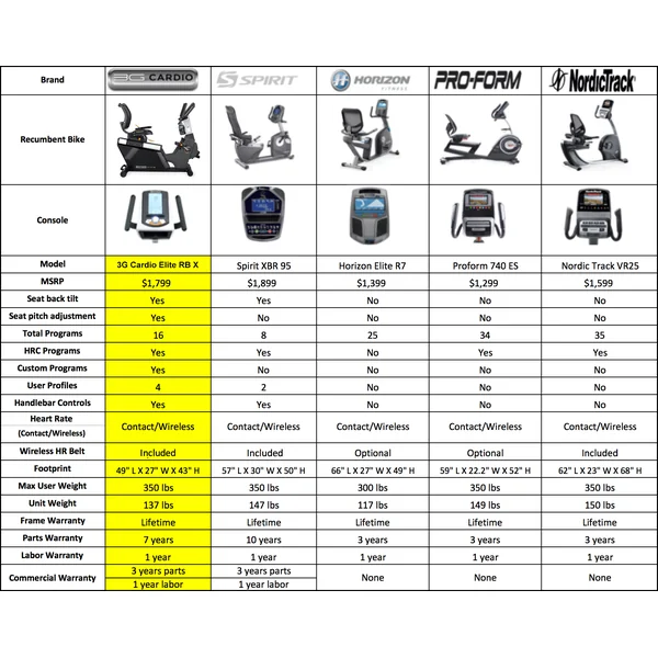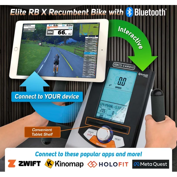 The 3G Cardio Elite RB Recumbent Bike features an incredibly comfortable, adjustable seat and back rest which will conform to your body shape and size. Extremely well built and with a small compact overall length of 49”, the Elite RB Recumbent Bike will fit into spaces other bikes won’t. Easy roll transport wheels and a smaller, easy to see over upper console will make working out a breeze! With a user weight capacity of 350 lbs. and a 7-year parts warranty, the Elite RB Bike will feel like you brought the health club home!