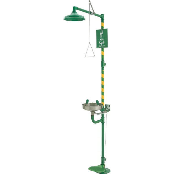 The emergency shower – eyewash combo is a plumbed first aid station that combines a full body shower unit with an eye/face wash fountain. Shower head is operated by a pull rod, the eyewash by a push flag. This unit meets ANSI Z358.1 standard for emergency eyewash and shower equipment. Foot pedal operation is also optionally available.