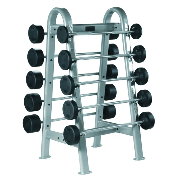 The York ETS rack is as attractive as it is functional. The curved tubing and sturdy legs provide a high level of stability and ease of use. This storage rack can hold 10 barbells and is double sided for easy loading and unloading. The rack can be utilized to store both Straight Pro Style Fixed Barbells as well as Curl Pro Style Fixed Barbells.