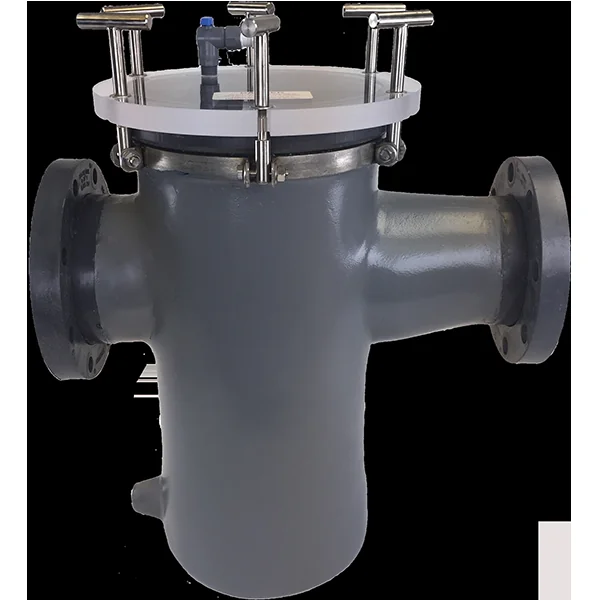 Eccentrically reduced fiberglass/PVC laminated swimming pool strainer features 150 pound PVC flanges, 1″ thick see-through acrylic cover with a 1/2″ vent, seated neoprene O-rings. Includes T-304 stainless steel basket with 1/8″ perforations. Weight 99 lbs.