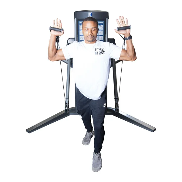 The Fitness First Cable Crossover machine is perfect for your commercial gym use. With its multi-functional design each arm rotates vertically and horizontally with multiple settings. Made of a solid steel design for strength and longevity. Rubber handle grips for ease of use. Plate stack is up to 200 pounds.