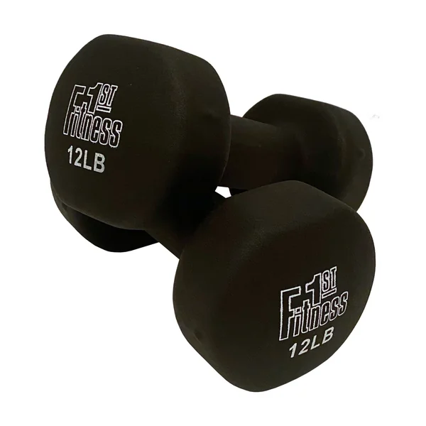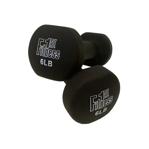 The Fitness First unique hex head neoprene dumbbells are made from high quality cast iron and neoprene coated for maximum durability. The neoprene coating provides a comfortable, slip-free grip while also protecting your floors. Each dumbbell has the weight printed on each end for easy identification. The hex head design prevents the weights from rolling and enables easy storing. Compact and convenient, these dumbbells are the ideal tools for all fitness lovers.
