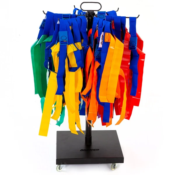 Never wrestle with a tangled mess of flag football belts again while dozens of energetic students impatiently wait to play a game or activity. This football belt storage rack makes flag storage effortless by keeping flags neat and organized. Up to 36 belts hang on 6 double powder-coated arms, regardless of flag type. This storage solution also keeps flag belts up and off the ground, so they last longer.
