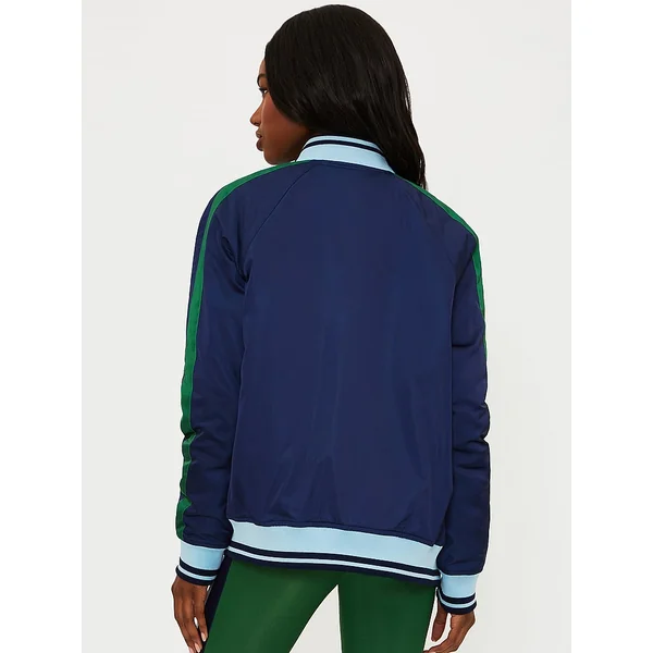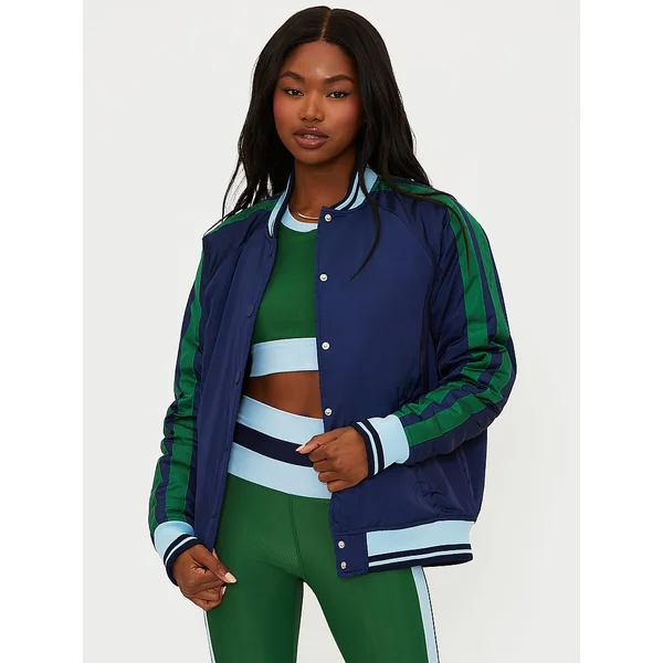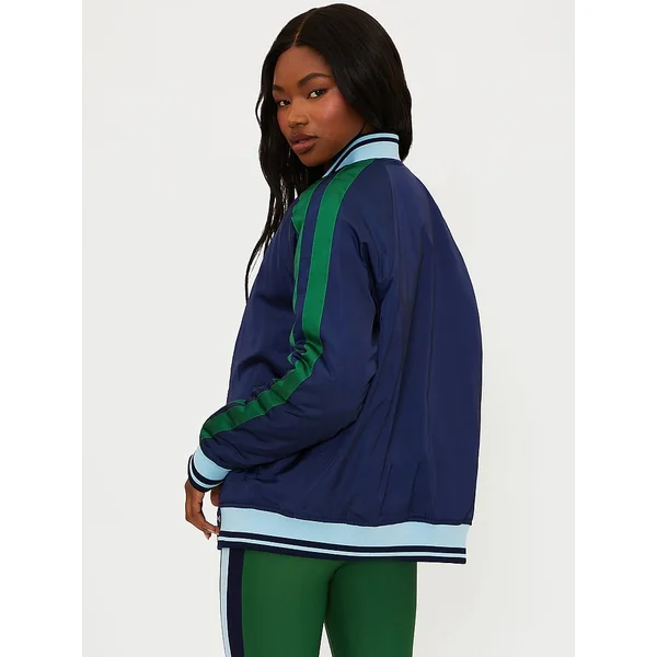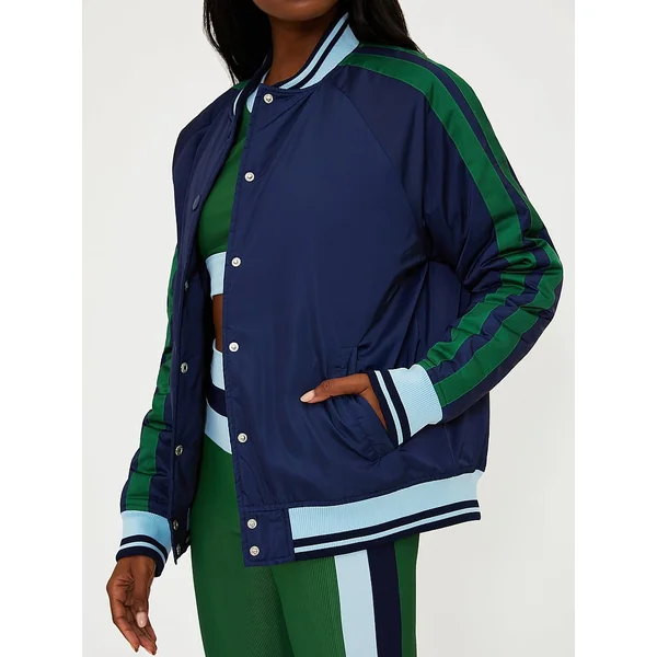 Sweet, sporty, and seriously chic: With an oversized fit, colorblock details, and a classic snap-button closure, this Jacket will take you from the court to coffee shop (to couch) in style.
