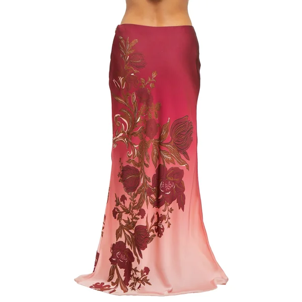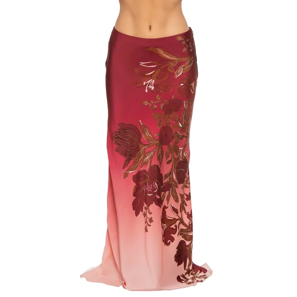Maxi skirt features floral print and offers a hidden side seam zipper closure.