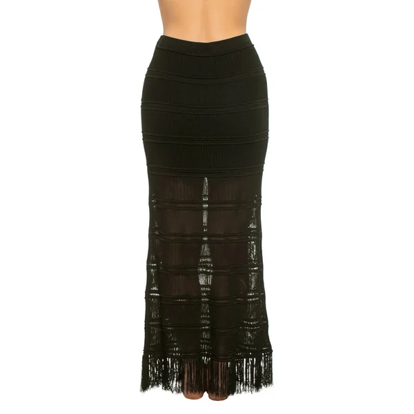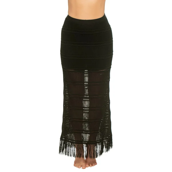 Flynn knit midi skirt features a fringe hem, and elastic waistband.