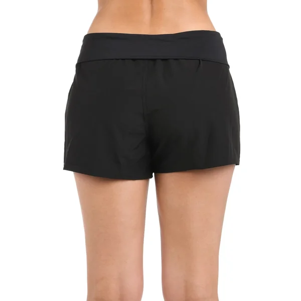 Board shorts feature a soft foldover waistband and offer full coverage.