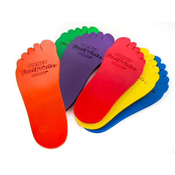 Soft vinyl spots shaped like footprints give students a visual cue where to place their feet or where to go. Use them as a visual cue to help students transition to the next class or project, when lining up, or to show proper foot placement during activities. These foot-shaped spots serve as a great resource for younger children or children with autism showing them what is expected, where they should be, or what they should do.