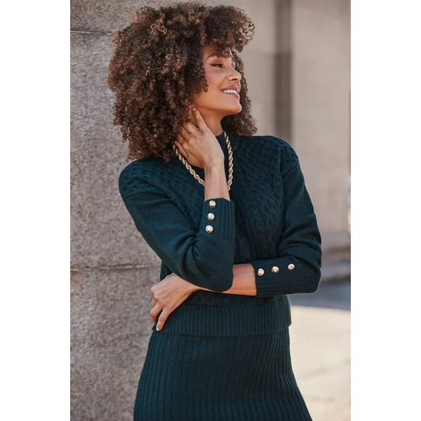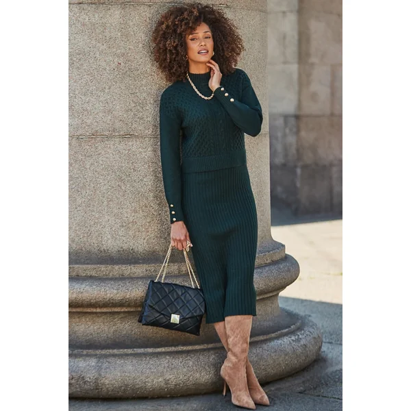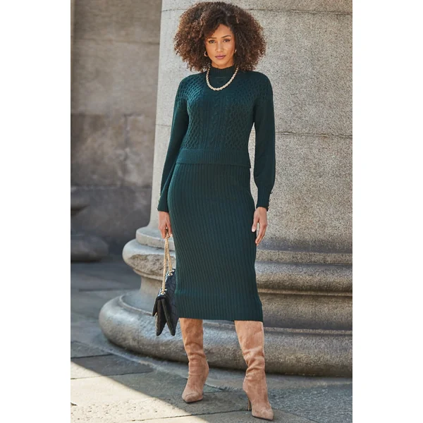 Be the first to review “Forest Green Two Part Cable Knit Midi Dress”