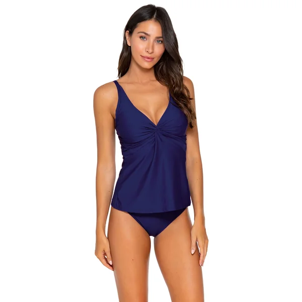 This is the perfect tankini for any woman who is seeking a fashionable top with a strong foundation. The twist tankini has a relaxed fit around the waist and provides full bust coverage and support. Special features include over the shoulder adjustable straps, hidden inner bra with underwire, powernet frame, removable cups, plush logo picot elastic, soft adjustable hook, eye back bra closure, and matching colored lining.