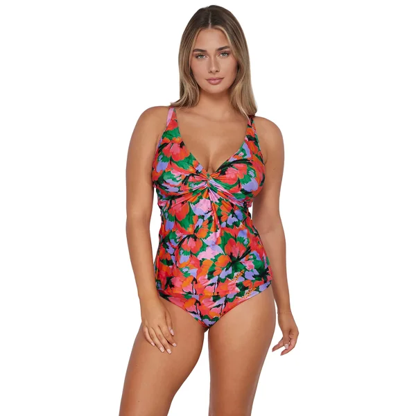 Forever tankini is perfect for any woman who is seeking a fashionable top with a strong foundation. This twist tankini has a relaxed fit around the waist and provides full bust coverage and support. Special features include adjustable straps, underwire, removable cups, power net frame and a hidden hook and eye bra closure.