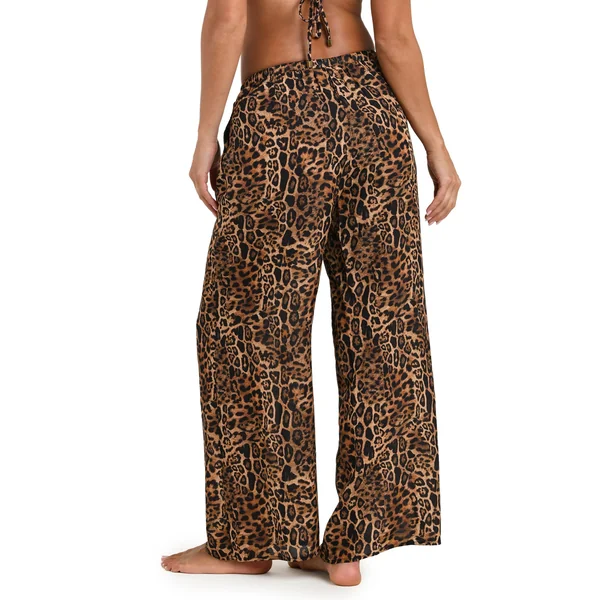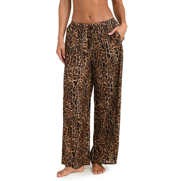 Pants feature animal print, side slant pockets, and a drawstring waist.